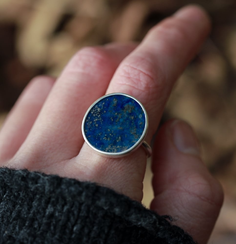 I see a whole galaxy within this incredible lapis lazuli, deep sky blues scattered with golden flecks that feel like stars.