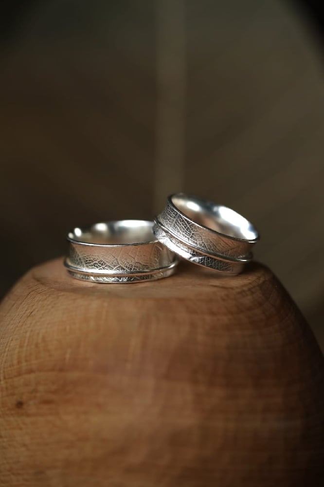The rings are satin polished on the outside to bring out the delicate leaf vein detail and highly polished on the inside making it very soft, smooth and comfortable to wear.